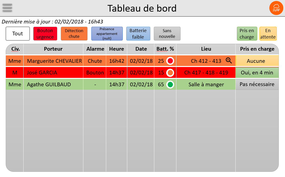 L'application Swap Résidence est destimée aux résidences séniors et permet de localiser précisement à l'intérieur d'un batiment, de gérer toutes les alertes et de vérifier qu'une alerte a bien été prise en compte par la personne portant la tablette Android.