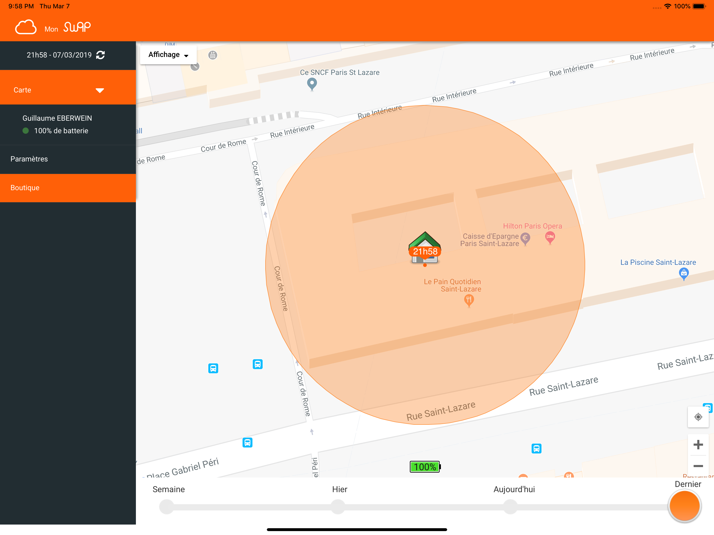 L'application Mon Swap est destimée au grand public et permet de géolocaliser en direct son porte clés GPS Swap.